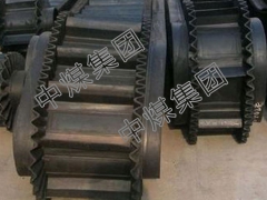 挡边输送带基带是由上覆盖胶、下覆盖胶、带芯和横向刚性层四部分组成。上覆盖胶厚度一般为3-6mm;下覆盖胶厚度一般为1.5-4.5mm。带芯材料承受拉力,其材料可以是棉帆布(CC)、尼龙帆布(NN)、聚酯帆布(EP)或钢丝绳(ST)。为了增加基带的横向刚性,在芯体加入特殊加强层,称横向刚性层。基带的宽度规格,与普通胶带相同。
